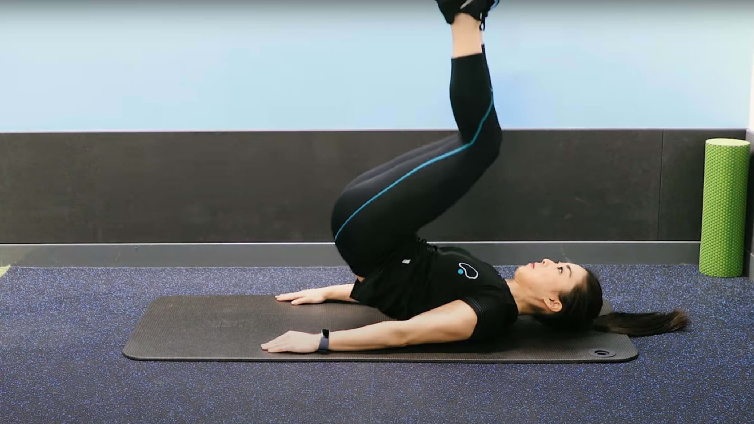 Toe touches have a similar movement pattern to crunches but keep the lower body off the floor to increase the challenge.